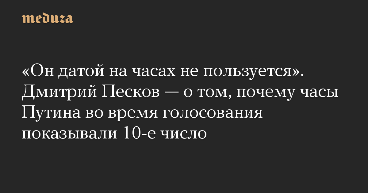 «Он датой на часах не пользуется». Дмитрий Песков — о том, почему часы Путина во время голосования показывали 10-е число