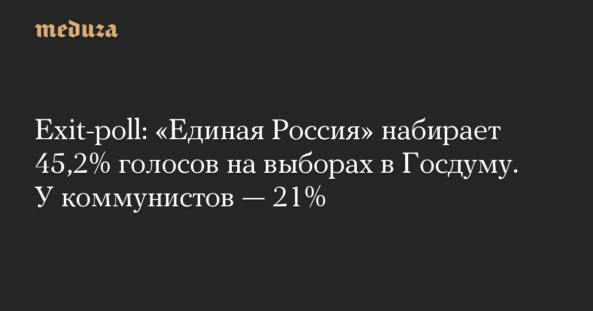 Exit-poll: «Единая Россия» набирает 45,2% голосов на выборах в Госдуму. У коммунистов — 21%