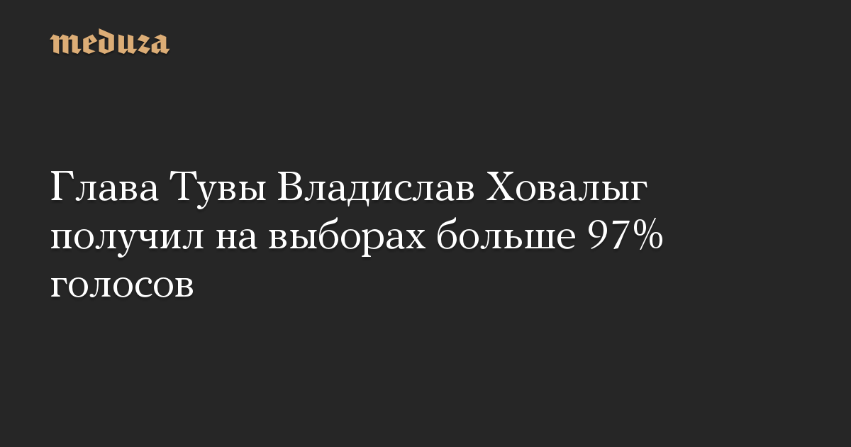 Глава Тувы Владислав Ховалыг получил на выборах больше 97% голосов