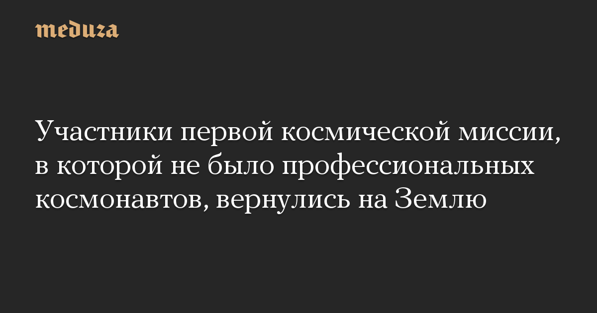 Участники первой космической миссии, в которой не было профессиональных космонавтов, вернулись на Землю