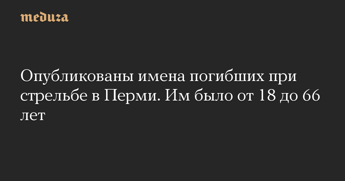 Опубликованы имена погибших при стрельбе в Перми. Им было от 18 до 66 лет