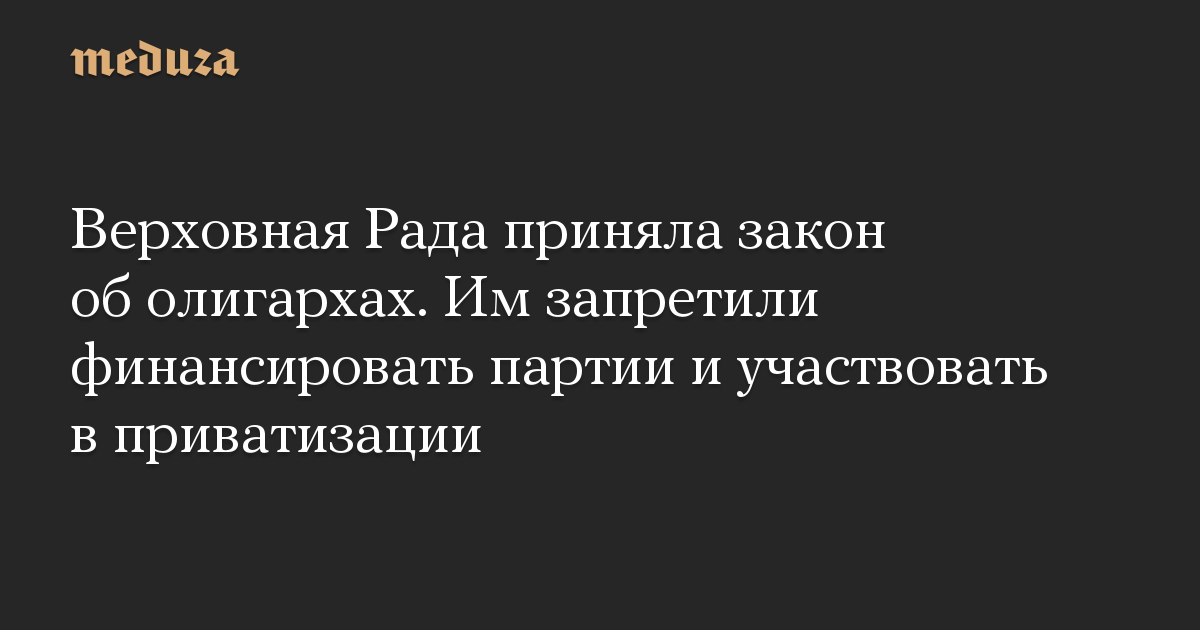 Верховная Рада приняла закон об олигархах. Им запретили финансировать партии и участвовать в приватизации