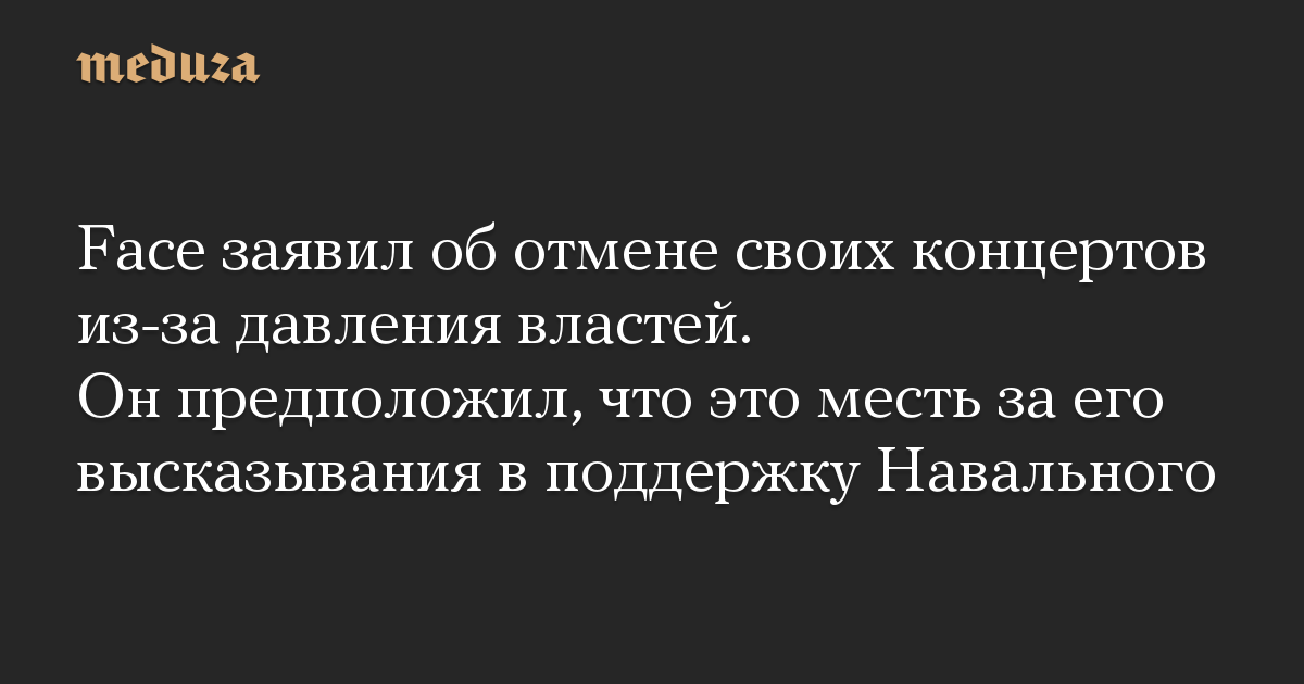 Face заявил об отмене своих концертов из-за давления властей. Он предположил, что это месть за его высказывания в поддержку Навального