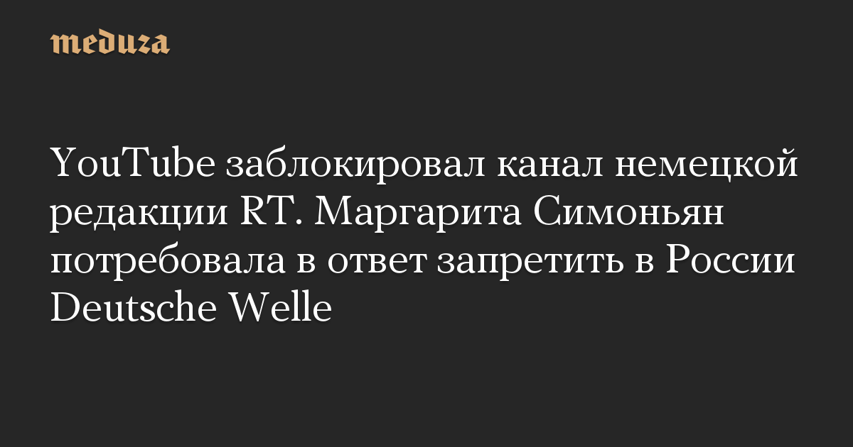 YouTube заблокировал канал немецкой редакции RT. Маргарита Симоньян потребовала в ответ запретить в России Deutsche Welle