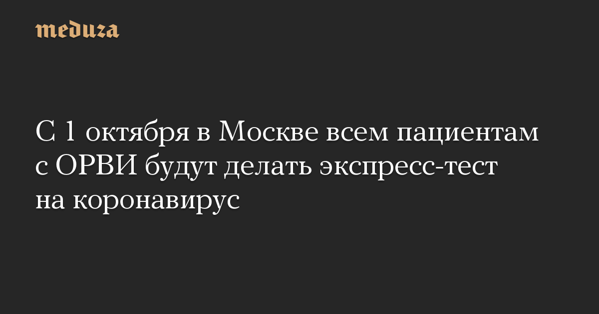 С 1 октября в Москве всем пациентам с ОРВИ будут делать экспресс-тест на коронавирус