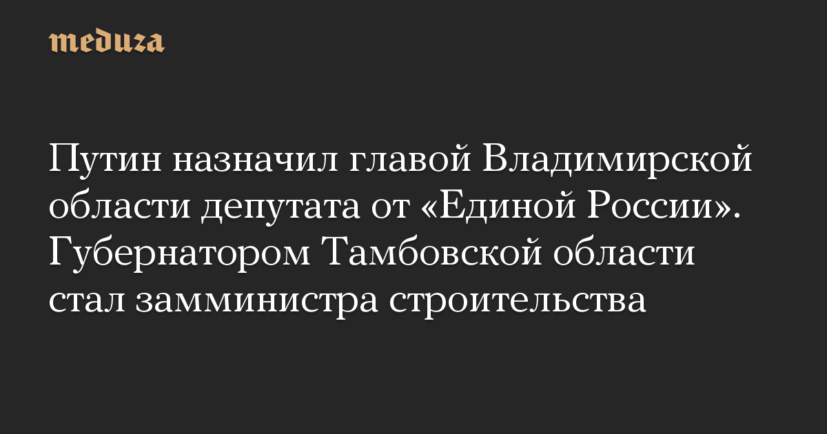 Путин назначил главой Владимирской области депутата от «Единой России». Губернатором Тамбовской области стал замминистра строительства