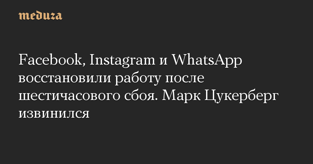 Facebook, Instagram и WhatsApp восстановили работу после шестичасового сбоя. Марк Цукерберг извинился