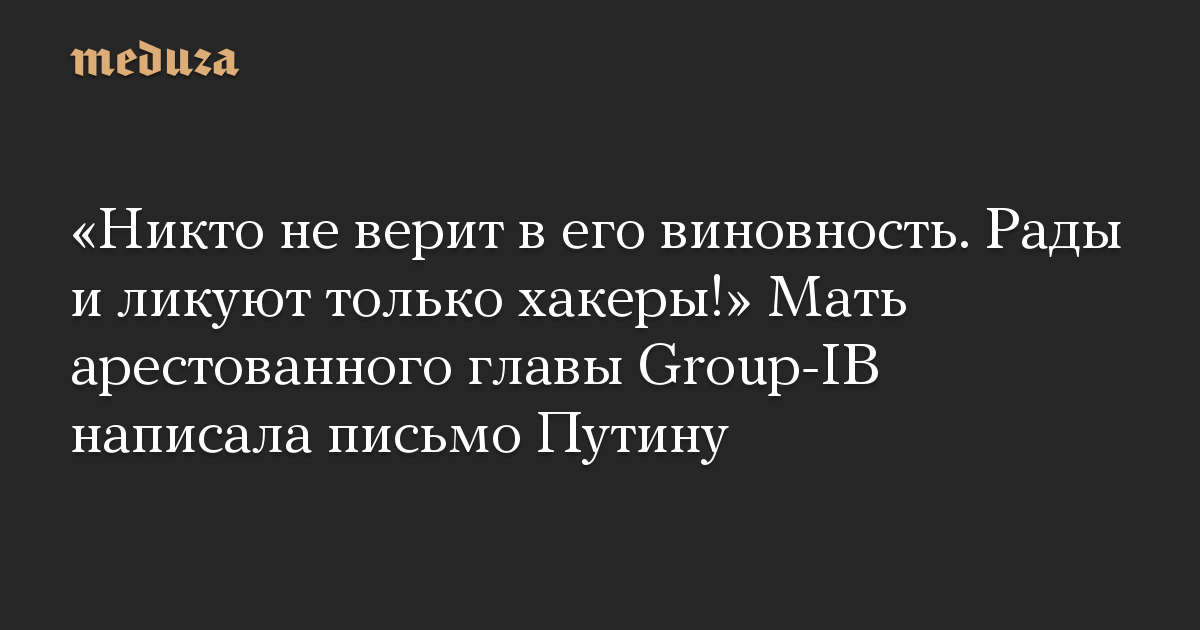 «Никто не верит в его виновность. Рады и ликуют только хакеры!» Мать арестованного главы Group-IB написала письмо Путину