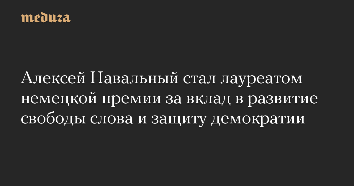 Алексей Навальный стал лауреатом немецкой премии за вклад в развитие свободы слова и защиту демократии