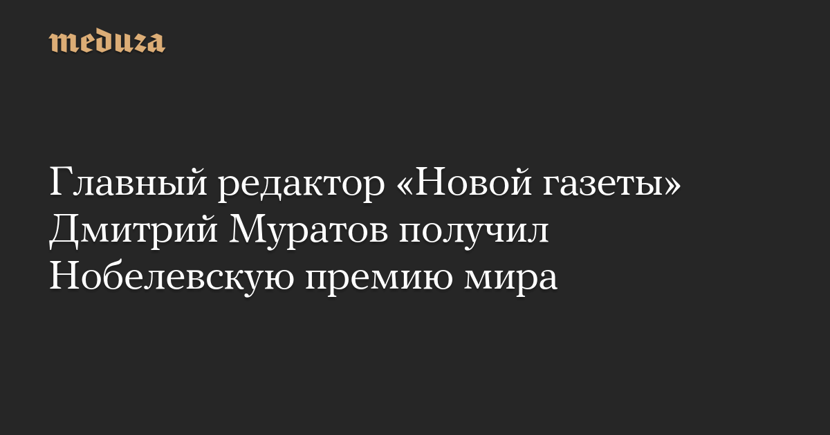 Муратов, в свою очередь, заявил, что Нобелевская премия мира является не его заслугой, а погибших за свободу слова коллег-журналистов, сообщает ТАСС.