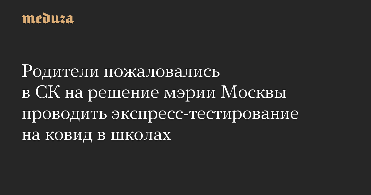 Обращение родителей, адресованное главе СК Александру Бастрыкину, оказалось в распоряжении «Медузы». Авторы обращения недовольны тем, что экспресс-тесты будут проводить учителя, согласие родителей на эту процедуру не требуется, при тестировании собираются применять средства фото- или видеофиксации, а не сдавших тест или не предъявивших отрицательный ПЦР-тест не допустят к занятиям.
