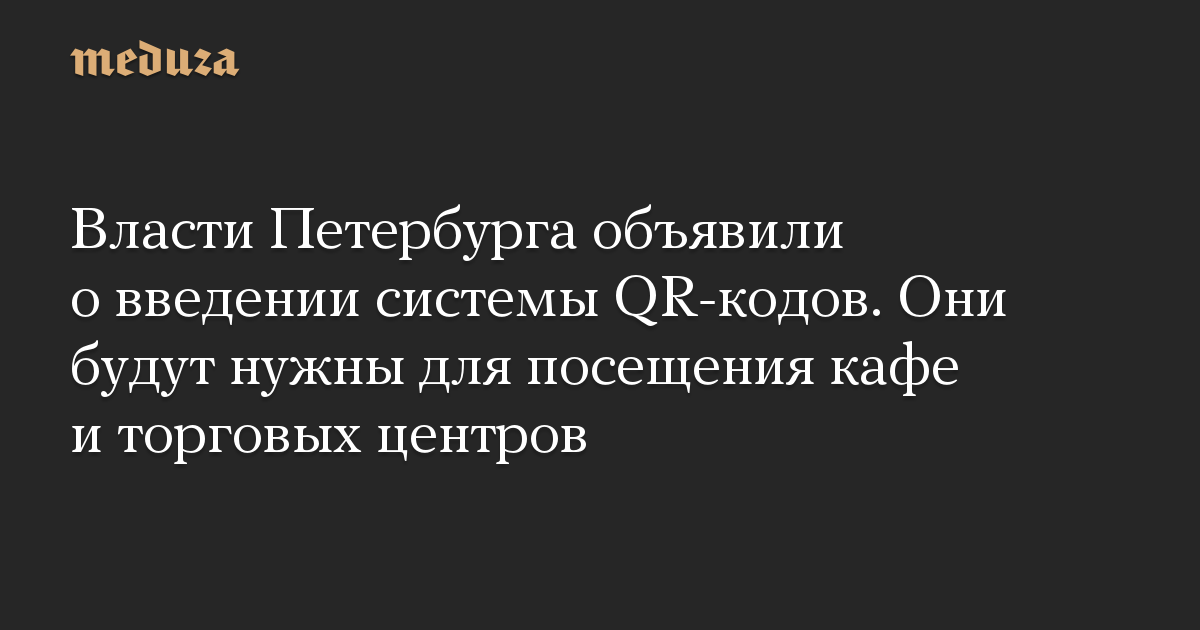 Власти Петербурга объявили о введении системы QR-кодов. Они будут нужны для посещения кафе и торговых центров