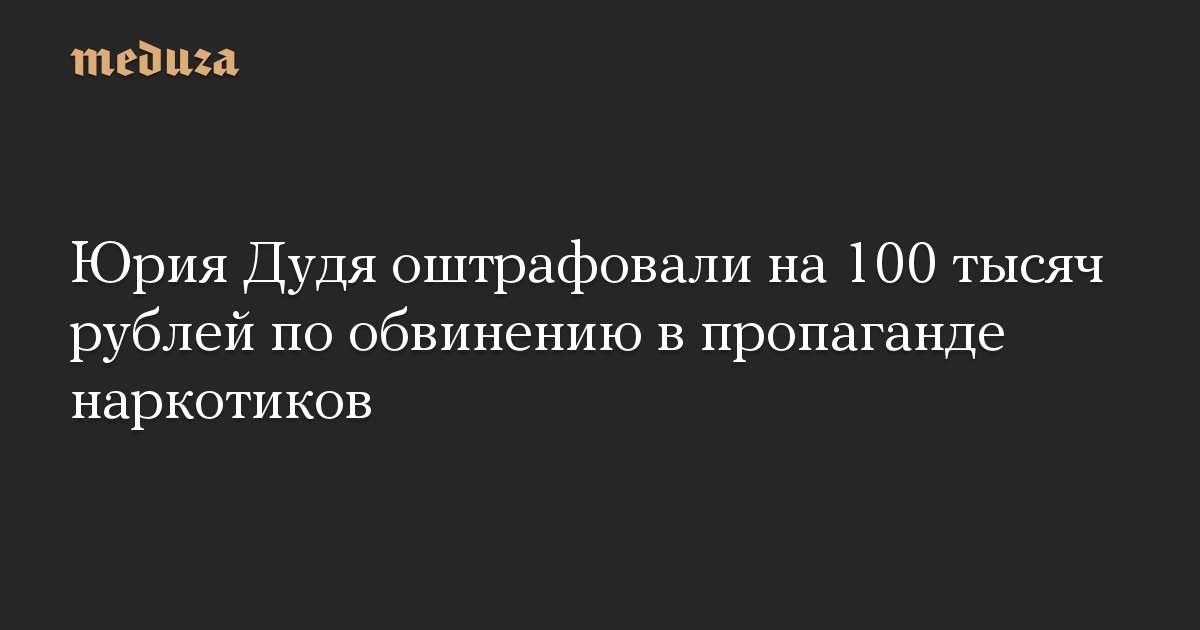 Юрия Дудя оштрафовали на 100 тысяч рублей по обвинению в пропаганде наркотиков