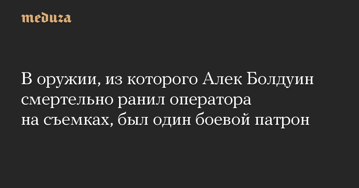 В оружии, из которого актер Алек Болдуин застрелил оператора Галину Хатчинс и ранил режиссера Джоэла Соусу на съемках фильма «Ржавчина», находился «один боевой патрон». Об этом говорится в письме, которое профсоюз IATSE Local 44, объединяющий представителей разных профессий, направил своим членам, пишет IndieWire.
