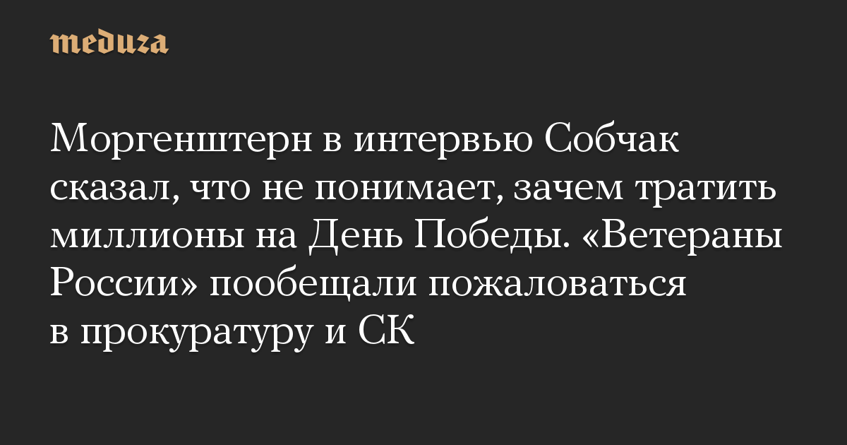 Моргенштерн в интервью Собчак сказал, что не понимает, зачем тратить миллионы на День Победы. «Ветераны России» пообещали пожаловаться в прокуратуру и СК