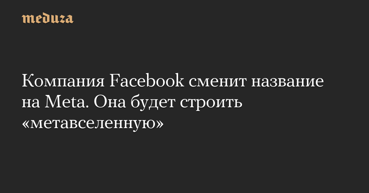 Компания Facebook сменит название на Meta. Она будет строить «метавселенную»