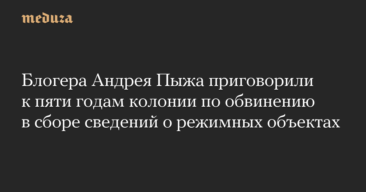Мосгорсуд приговорил к пяти годам колонии общего режима 37-летнего блогера Андрея Пыжа, признав его виновным в незаконном получении сведений, составляющих государственную тайну, сообщает «Интерфакс».