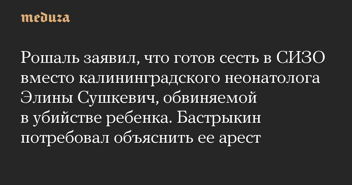 Рошаль заявил, что готов сесть в СИЗО вместо калининградского неонатолога Элины Сушкевич, обвиняемой в убийстве ребенка. Бастрыкин потребовал объяснить ее арест