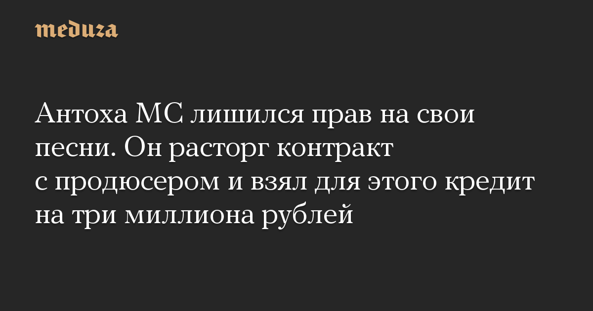 Антоха МС лишился прав на свои песни. Он расторг контракт с продюсером и взял для этого кредит на три миллиона рублей