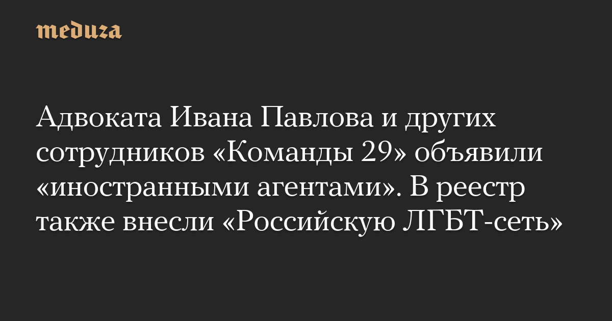 Адвоката Ивана Павлова и других сотрудников «Команды 29» объявили «иностранными агентами». В реестр также внесли «Российскую ЛГБТ-сеть»