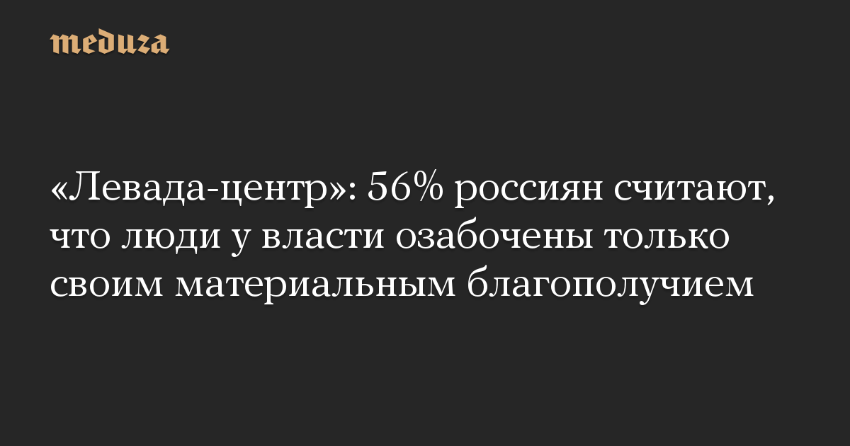 «Левада-центр»: 56% россиян считают, что люди у власти озабочены только своим материальным благополучием