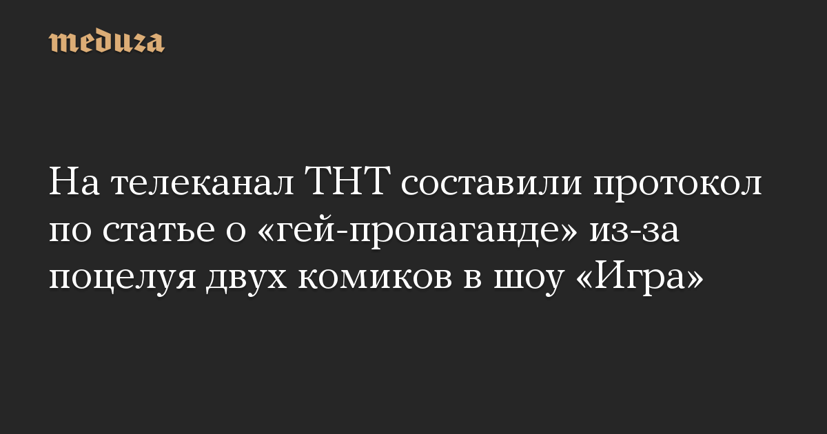 На телеканал ТНТ составили протокол по статье о «гей-пропаганде» из-за поцелуя двух комиков в шоу «Игра»