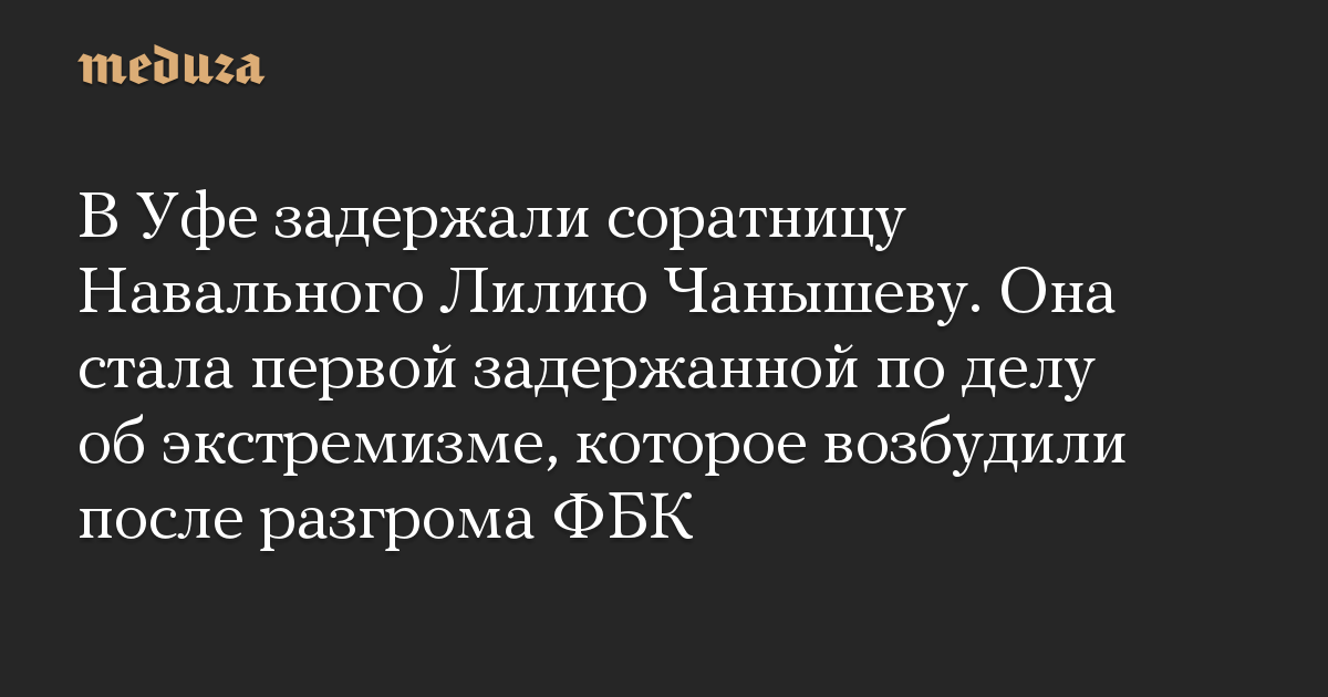 В Уфе задержали соратницу Навального Лилию Чанышеву. Она стала первой задержанной по делу об экстремизме, которое возбудили после разгрома ФБК