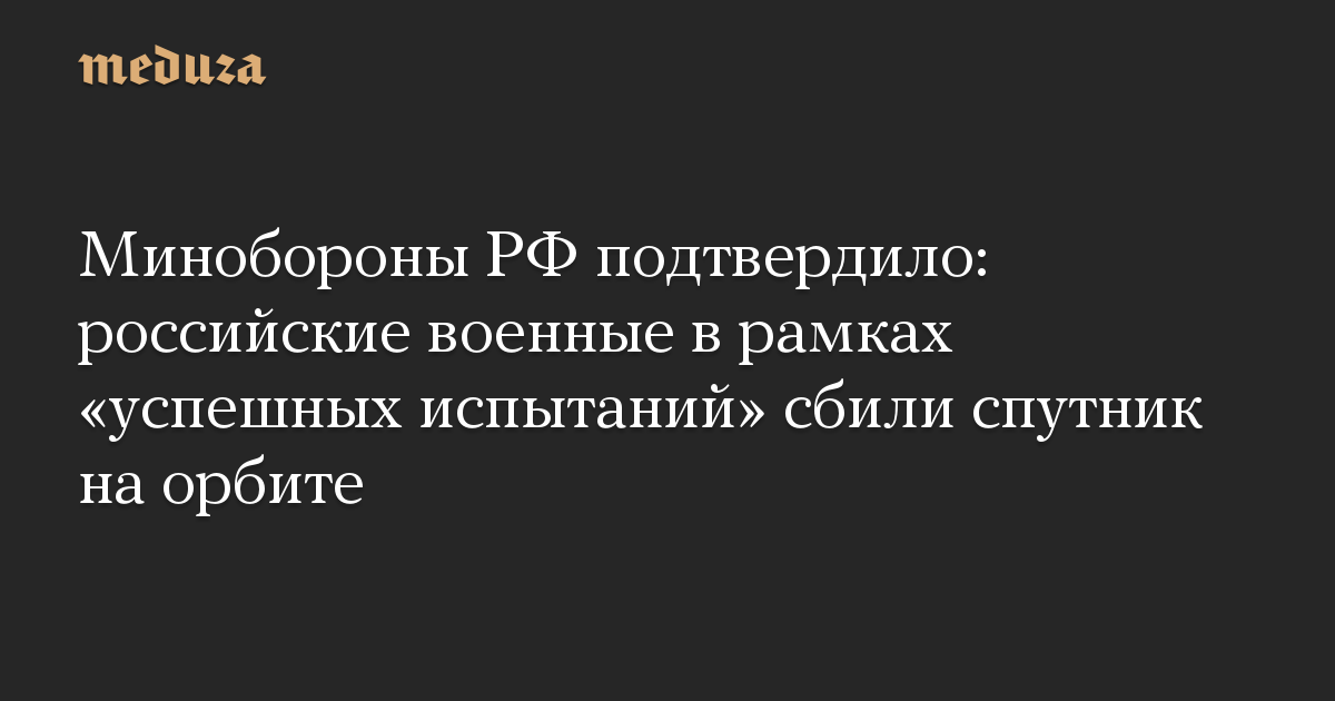 Минобороны РФ подтвердило: российские военные в рамках «успешных испытаний» сбили спутник на орбите