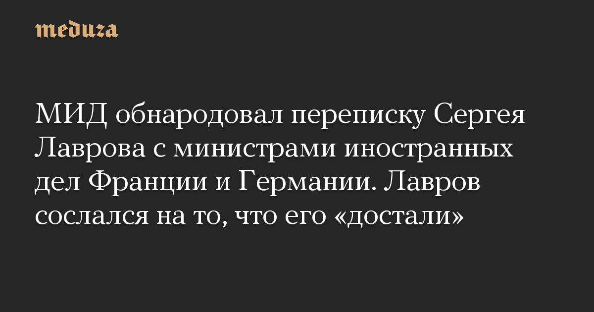 МИД обнародовал переписку Сергея Лаврова с министрами иностранных дел Франции и Германии. Лавров сослался на то, что его «достали»