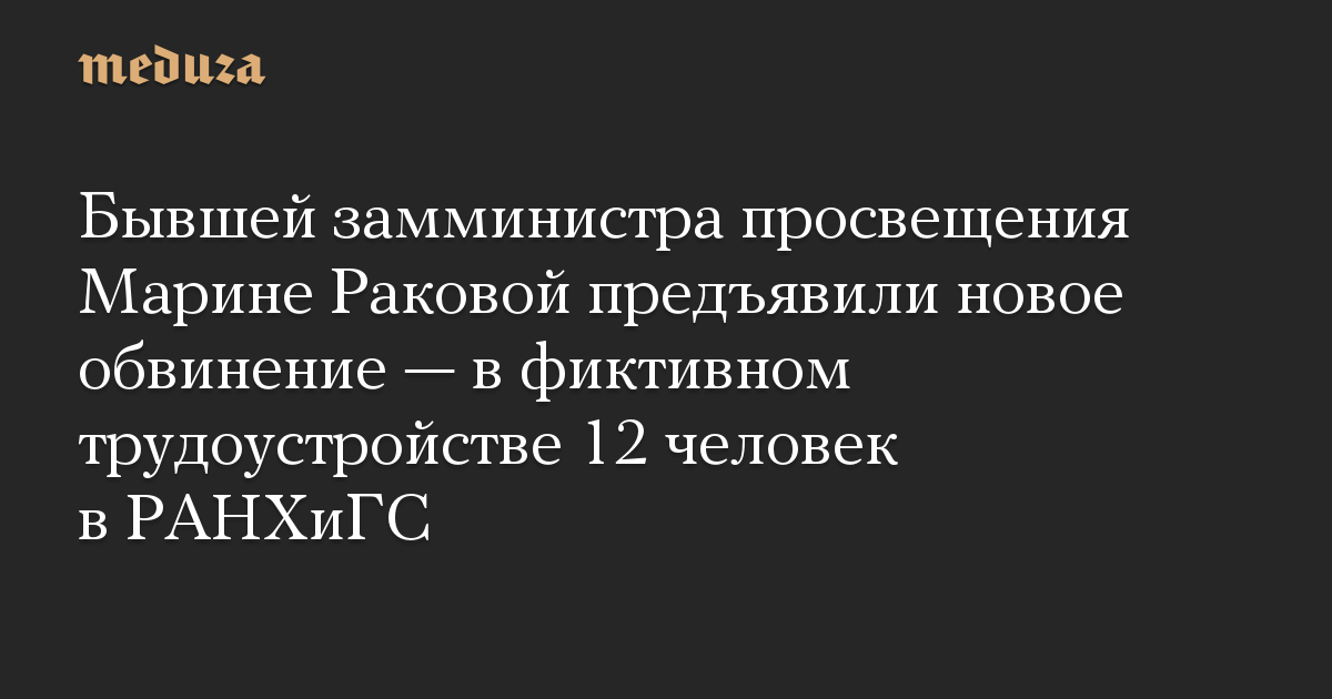 Бывшей замминистра просвещения Марине Раковой предъявили новое обвинение — в фиктивном трудоустройстве 12 человек в РАНХиГС