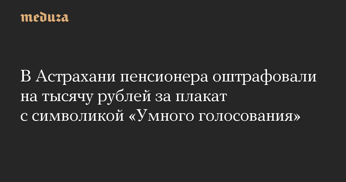 В Астрахани пенсионера оштрафовали на тысячу рублей за плакат с символикой «Умного голосования»