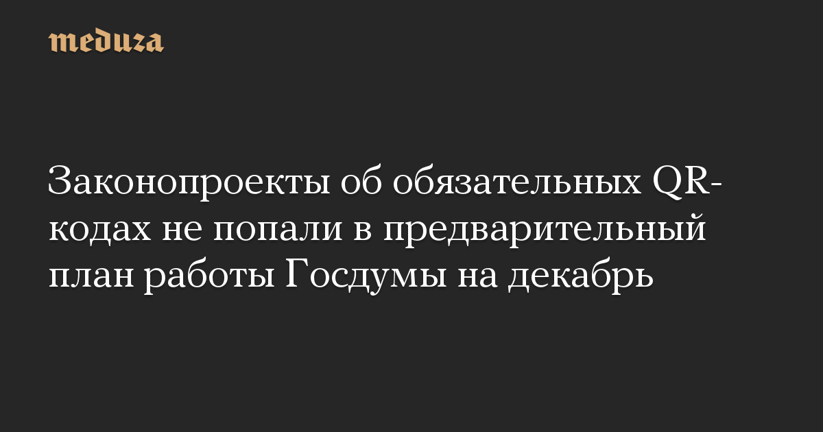Законопроекты об обязательных QR-кодах не попали в предварительный план работы Госдумы на декабрь