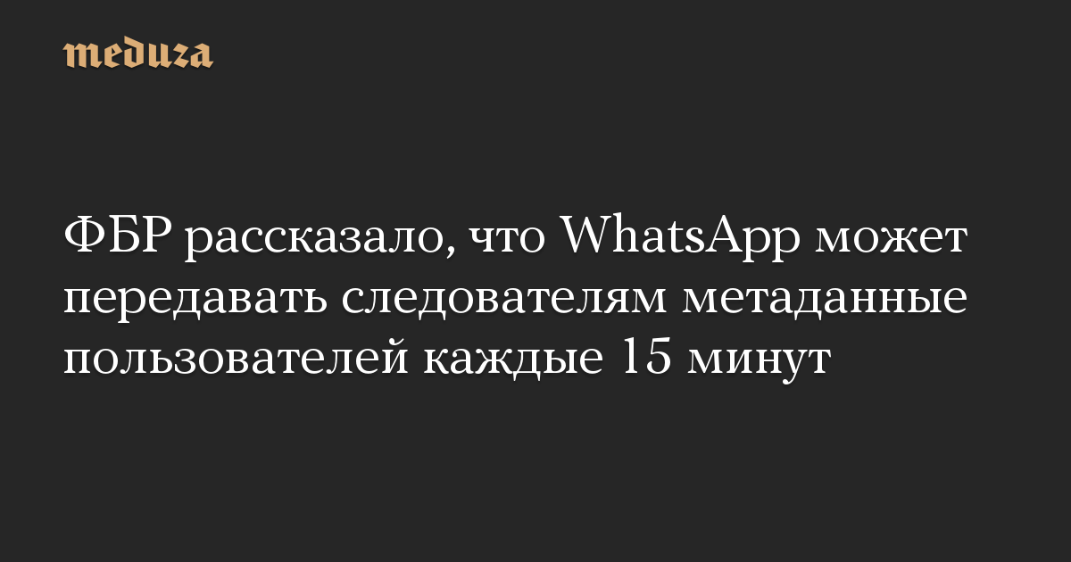 WhatsApp практически в режиме реального времени — каждые 15 минут — может передавать информацию об отправителе и адресате каждого сообщения в ответ на запрос на наблюдение. Из документа ФБР следует, что мессенджер в ответ на запрос будет передавать определенные метаданные, но не фактическое содержание сообщений. Представитель WhatsApp это подтвердил, отметив, что компания не раскрывает содержание переписки.
