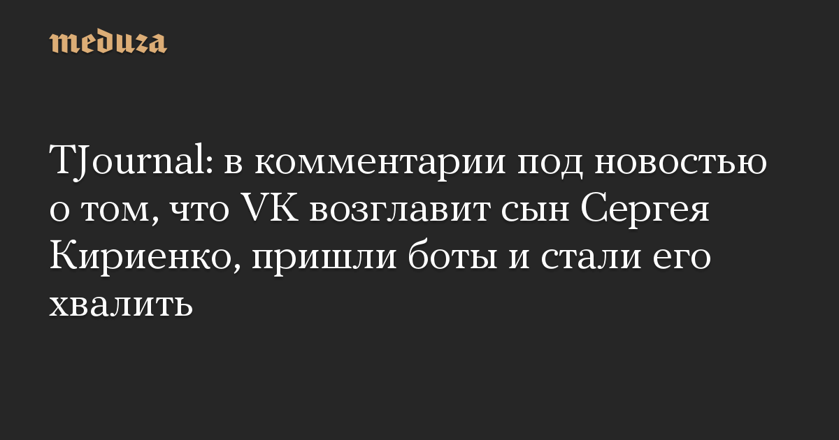 TJournal: в комментарии под новостью о том, что VK возглавит сын Сергея Кириенко, пришли боты и стали его хвалить