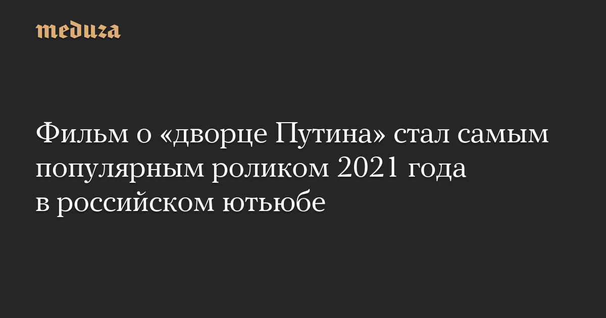 Фильм о «дворце Путина» стал самым популярным роликом 2021 года в российском ютьюбе