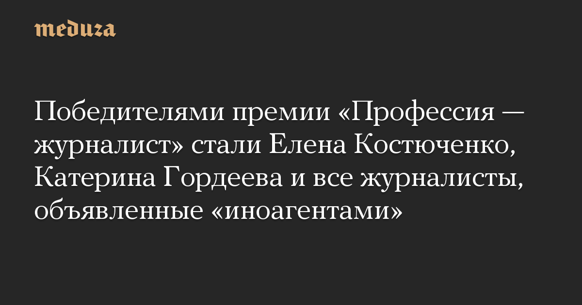 Победителями премии «Профессия — журналист» стали Елена Костюченко, Катерина Гордеева и все журналисты, объявленные «иноагентами»