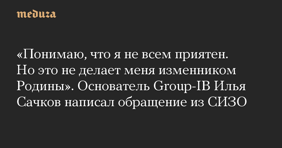«Понимаю, что я не всем приятен. Но это не делает меня изменником Родины». Основатель Group-IB Илья Сачков написал обращение из СИЗО