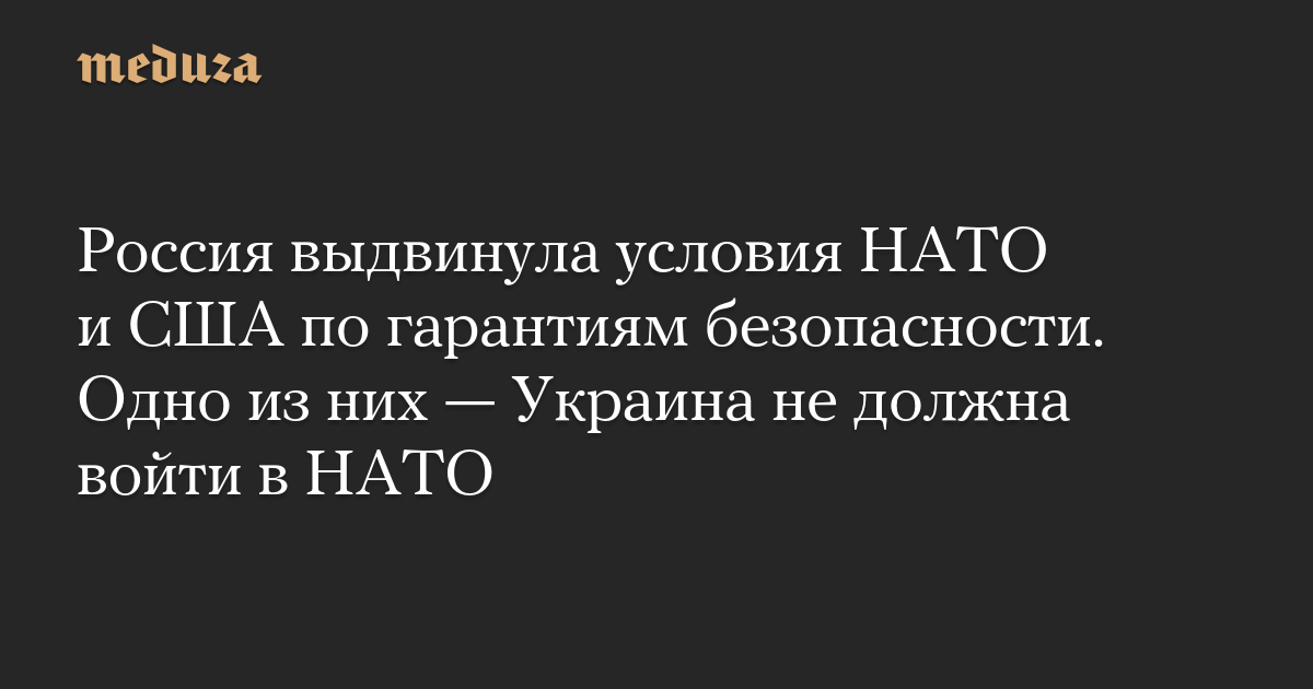 Россия выдвинула условия НАТО и США по гарантиям безопасности. Одно из них — Украина не должна войти в НАТО