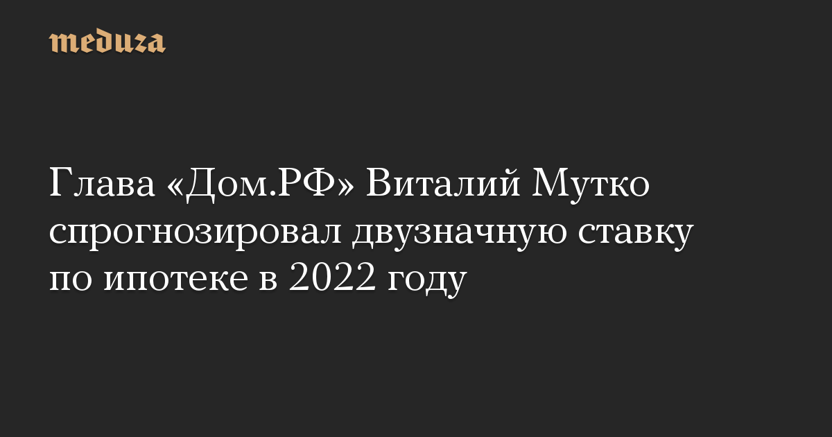 Глава «Дом.РФ» Виталий Мутко спрогнозировал двузначную ставку по ипотеке в 2022 году