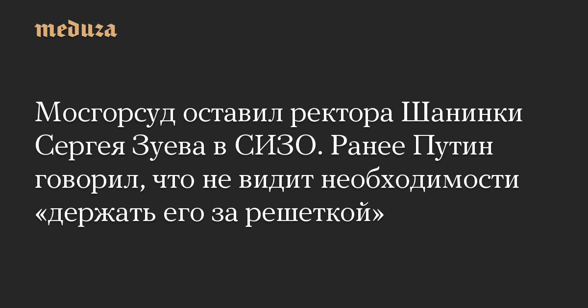 Мосгорсуд оставил ректора Шанинки Сергея Зуева в СИЗО. Ранее Путин говорил, что не видит необходимости «держать его за решеткой»