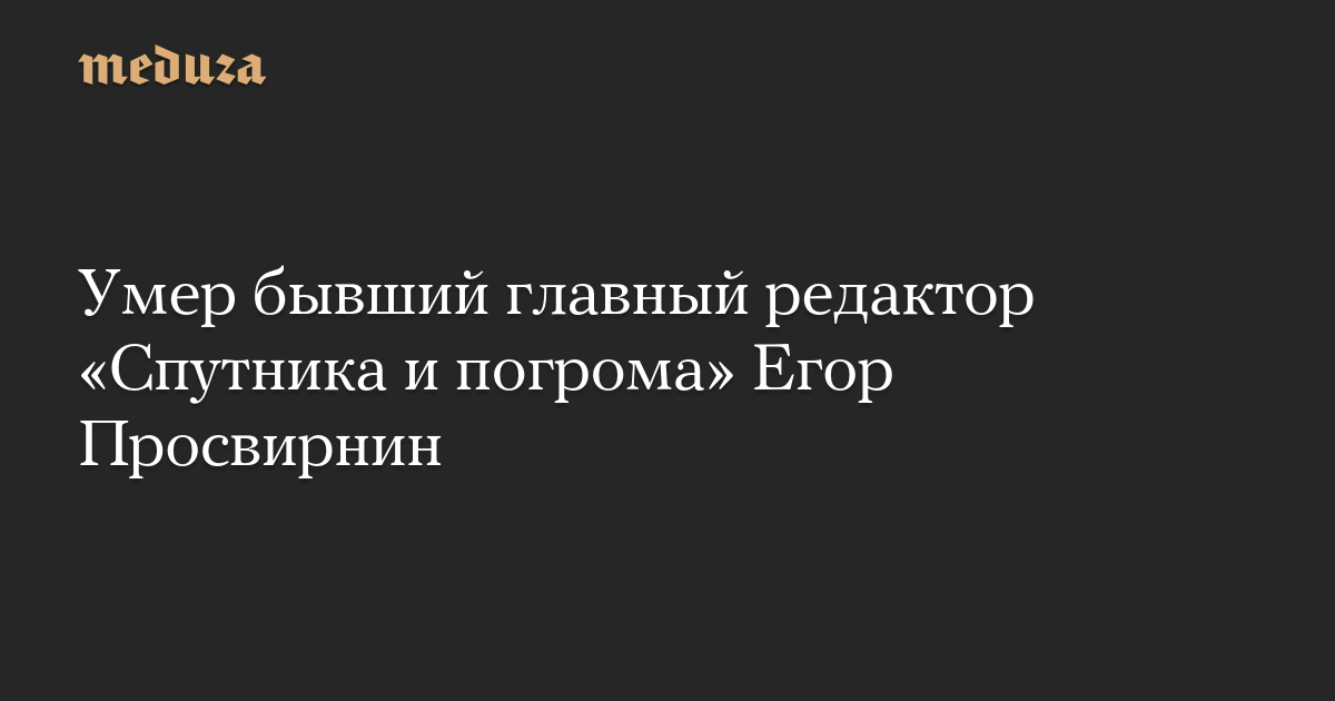 Егор Просвирнин, бывший главный редактор националистического сайта «Спутник и погром», умер в возрасте 35 лет. О смерти Просвирнина сообщил, в частности, политик Роман Юнеман.