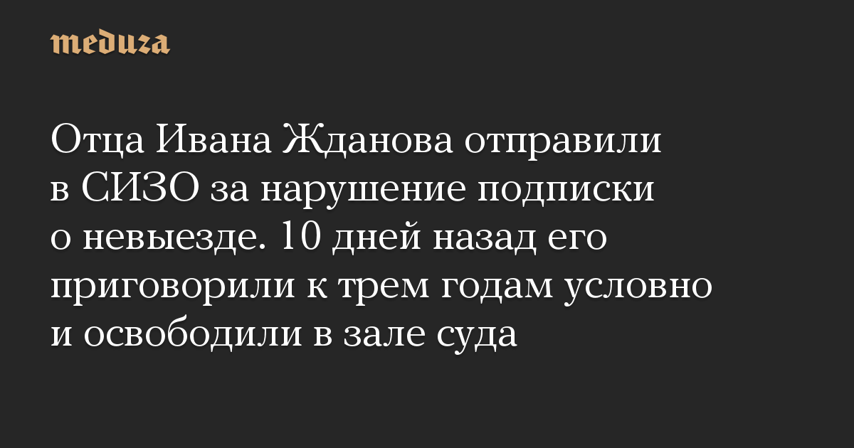 Отца Ивана Жданова отправили в СИЗО за нарушение подписки о невыезде. 10 дней назад его приговорили к трем годам условно и освободили в зале суда