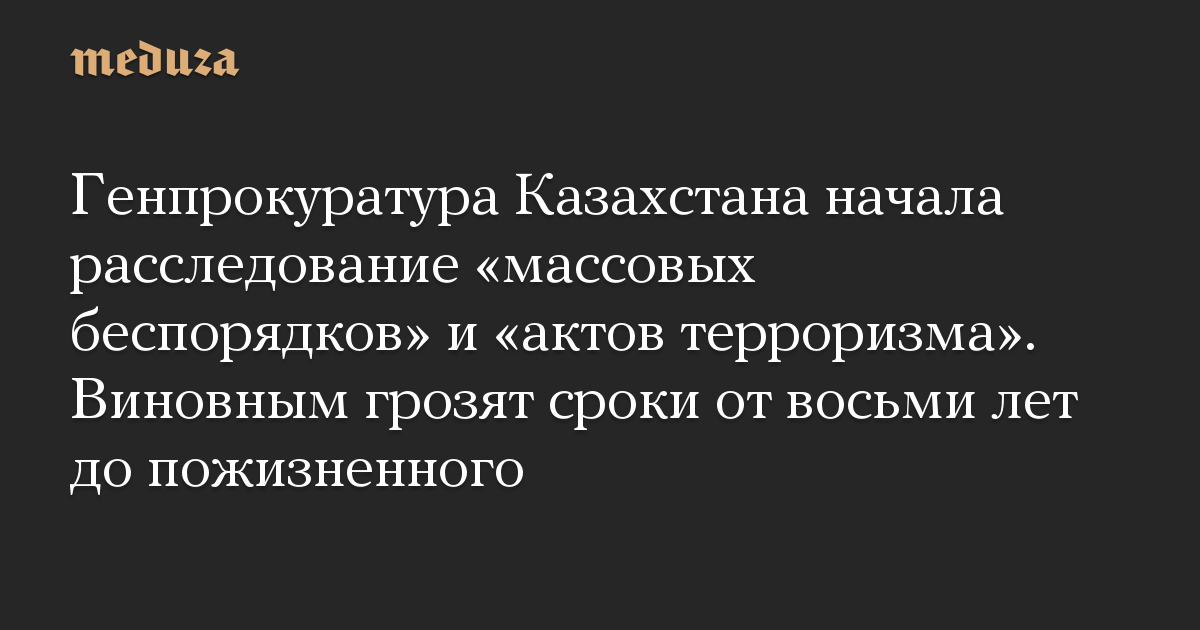 Генпрокуратура Казахстана начала расследование «массовых беспорядков» и «актов терроризма». Виновным грозят сроки от восьми лет до пожизненного