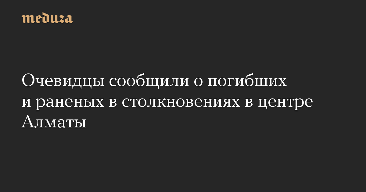 В районе площади Республики в центре Алматы произошли столкновения между протестующими и полицией. Корреспондент ТАСС с места событий сообщает, что люди, бегущие со стороны площади Республики, рассказали о погибших и раненых в результате столкновений.