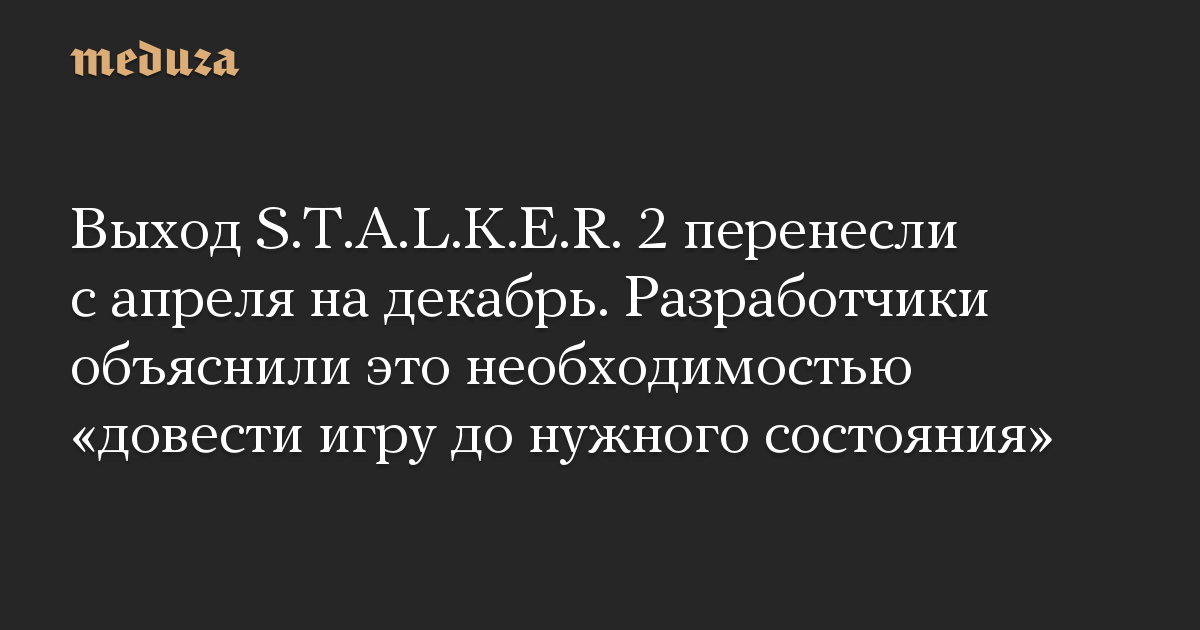 Выход S.T.A.L.K.E.R. 2 перенесли с апреля на декабрь. Разработчики объяснили это необходимостью «довести игру до нужного состояния»