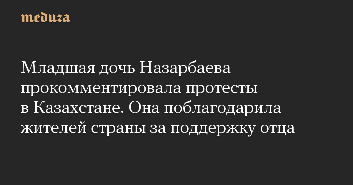 Алия Назарбаева, младшая дочь бывшего президента Казахстана Нурсултана Назарбаева, опубликовала в инстаграме пост, в котором впервые прокомментировала протесты в Казахстане.