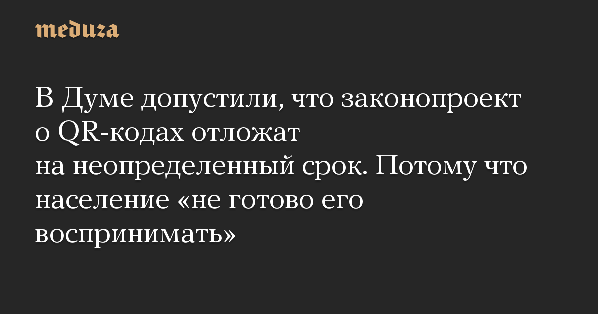 У меня большие основания полагать, что законопроект о QR-кодах будет отложен на неопределенный срок.
