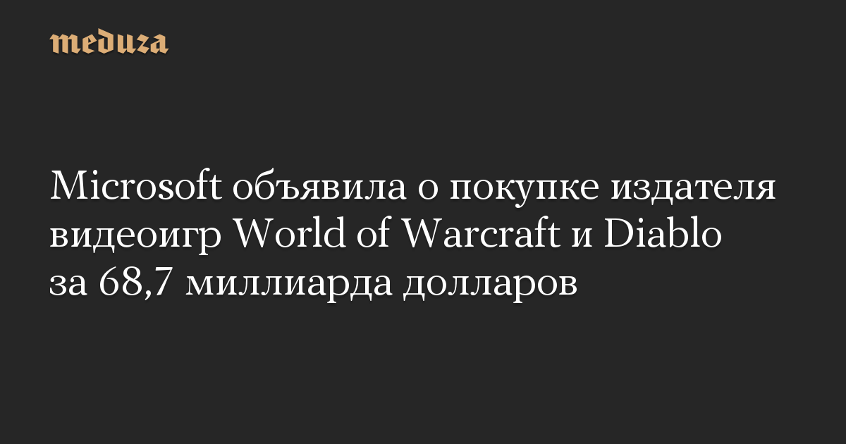Microsoft объявила о покупке издателя видеоигр World of Warcraft и Diablo за 68,7 миллиарда долларов