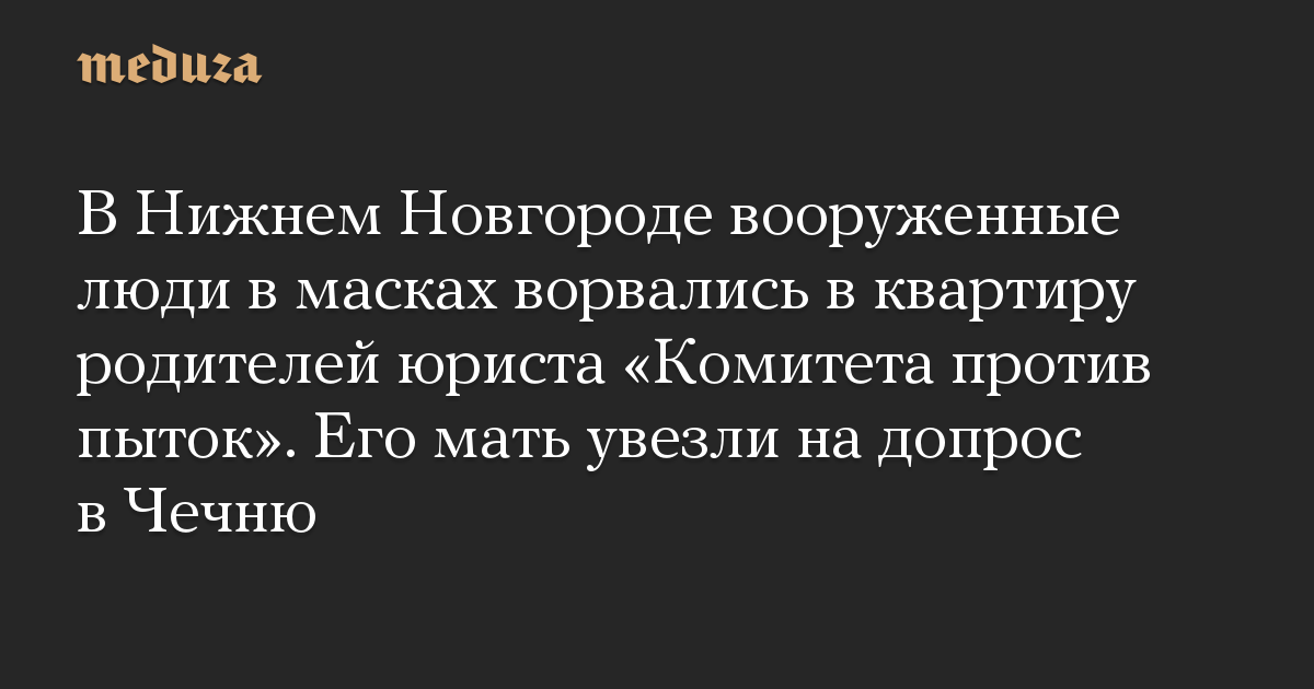 В Нижнем Новгороде вооруженные люди в масках ворвались в квартиру родителей юриста «Комитета против пыток». Его мать увезли на допрос в Чечню