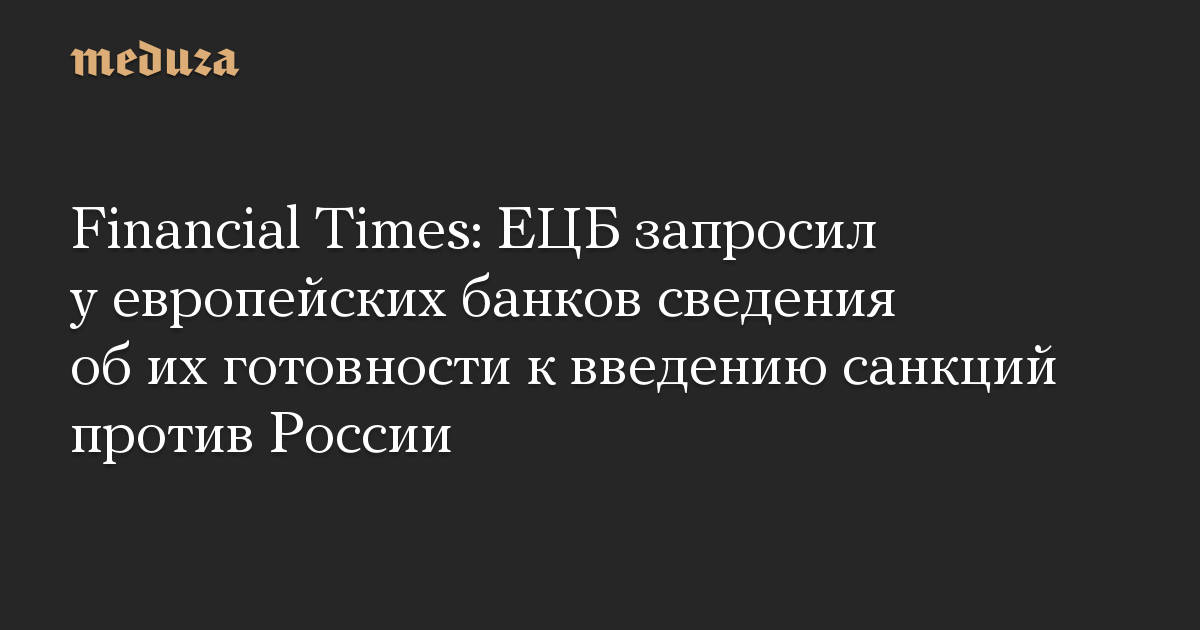 Financial Times: ЕЦБ запросил у европейских банков сведения об их готовности к введению санкций против России